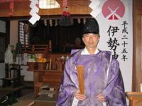 こうしたものの一つとして「お年玉」というものがあることを、今年はお祓いのあとに愛宕神社の小山利行宮司(左・写真)から、教えていただきました。「えっ?お年玉って子どもが親からもらうお金のことじゃないの?」と思いましたが、もともとは、そういうものではなかったそうです。